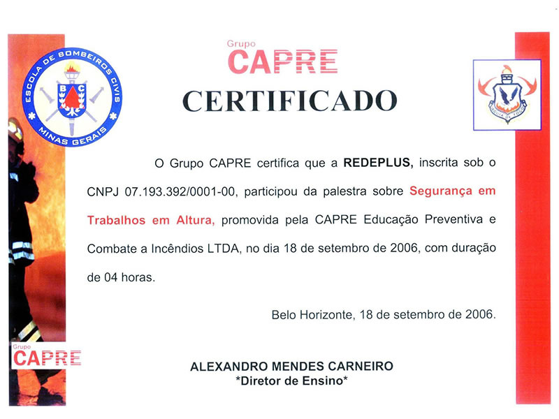 - Treinamento com o Corpo de Bombeiros e engenharia de segurança.