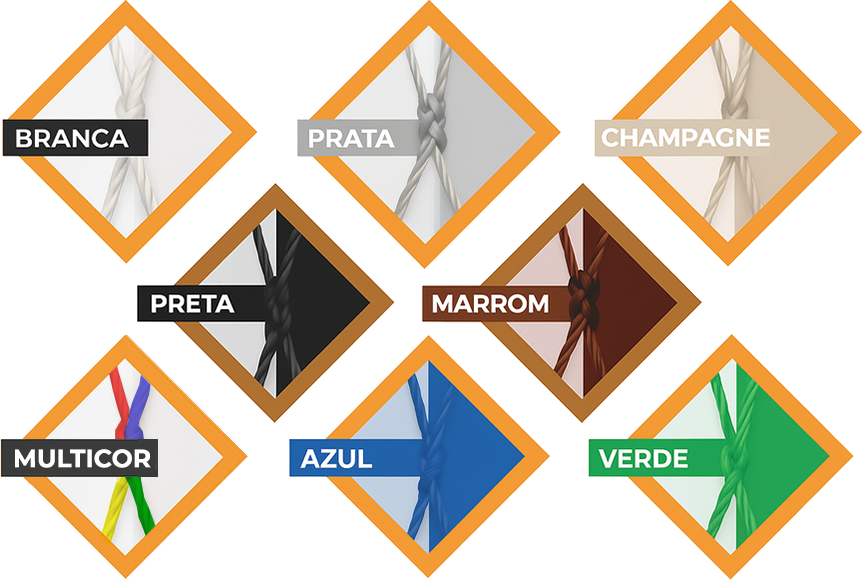 - Malhas diagonais com nós termofixados, mais resistência e durabilidade
